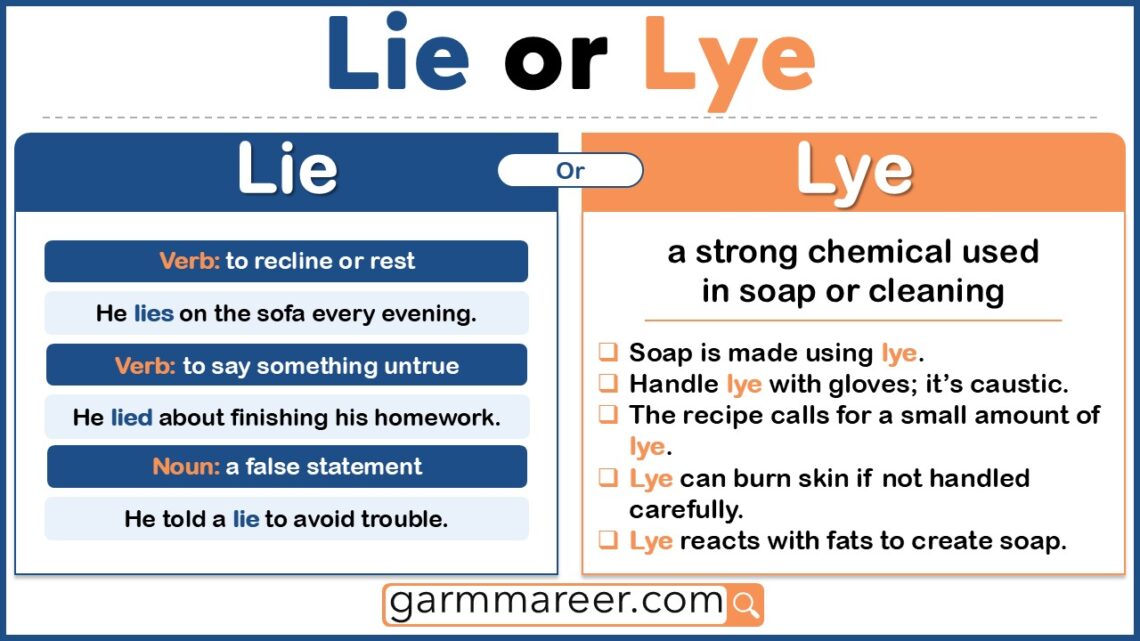 It’s easy to get confused between lie and lye because they sound almost the same. But their meanings are very different, and using the wrong one can completely change your sentence. Let’s break it down so it’s easy to remember.