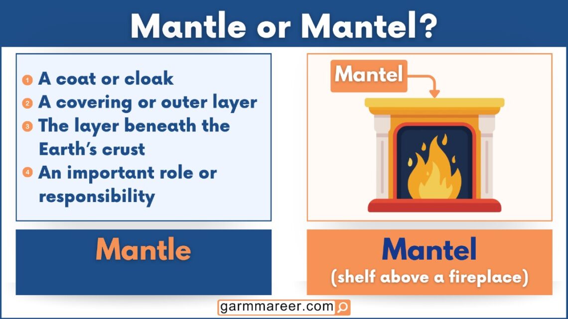 Before we get into the meanings, take a quick look at both words. Mantle and mantel sound the same, and that’s why many people mix them up. But once you understand what each one means, the difference becomes really clear.